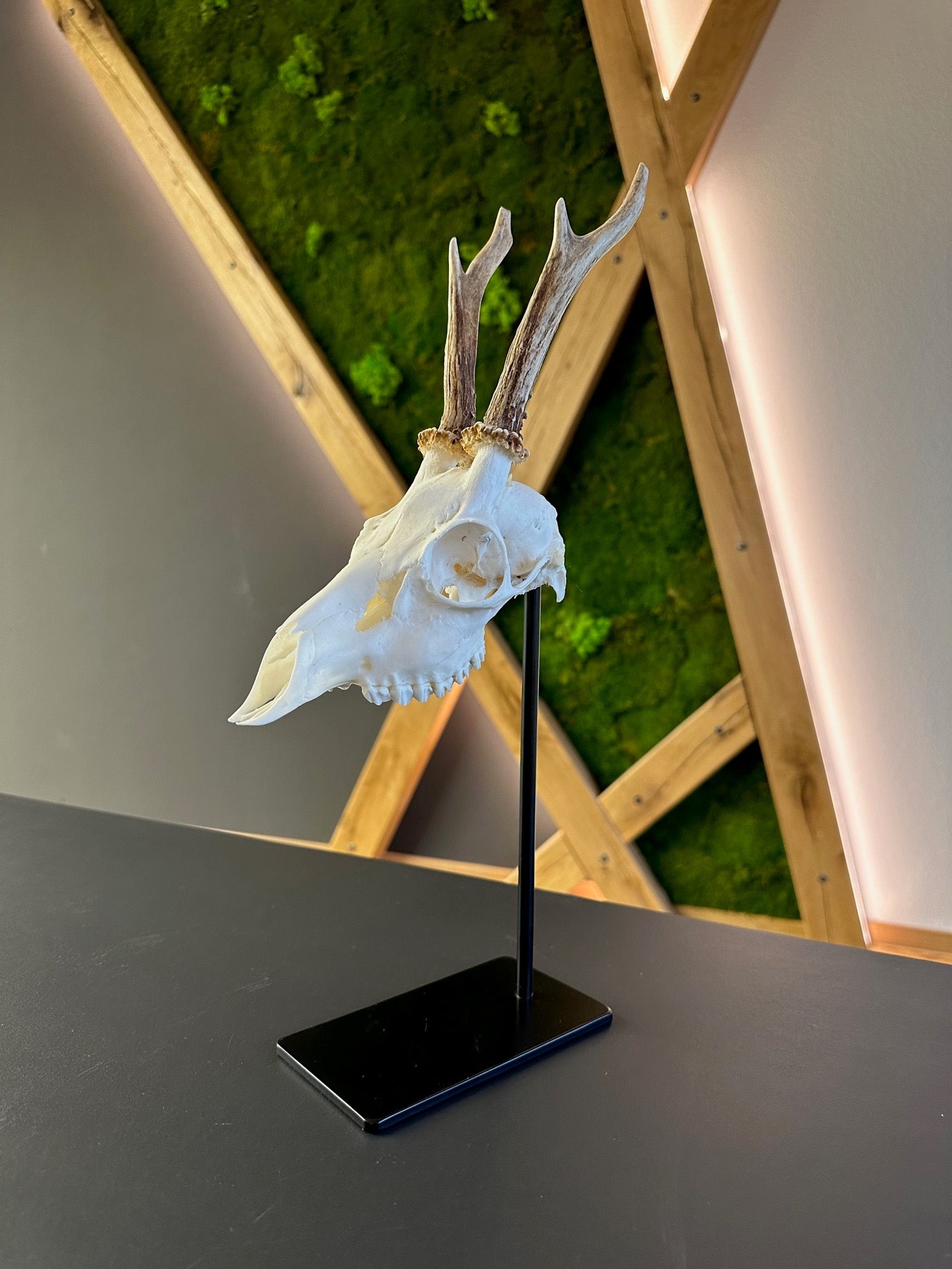 Handgemachter Trophäenhalter für Rehböcke. Bringt die Trophäe auf jedem Tisch, Regal oder auf der Fensterbank super zur Geltung.